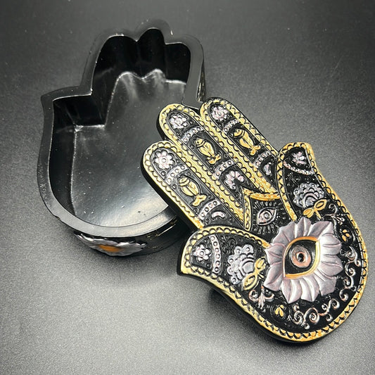 Black & Metallic Hamsa Jewelry Trinket Decorative Box