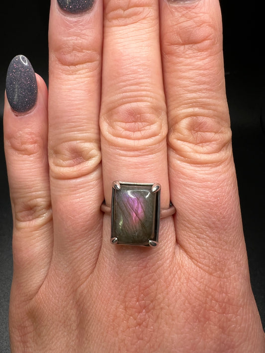 Purple Flash Labradorite Ring